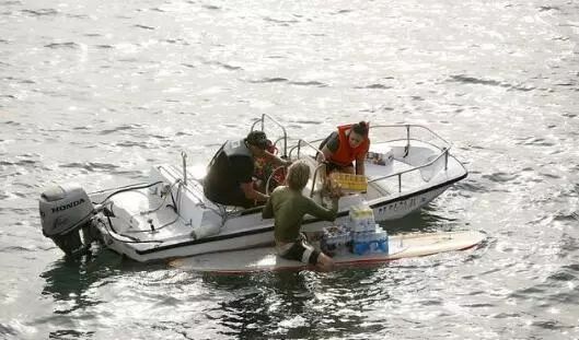 志愿者用沖浪板運(yùn)送援助物資
