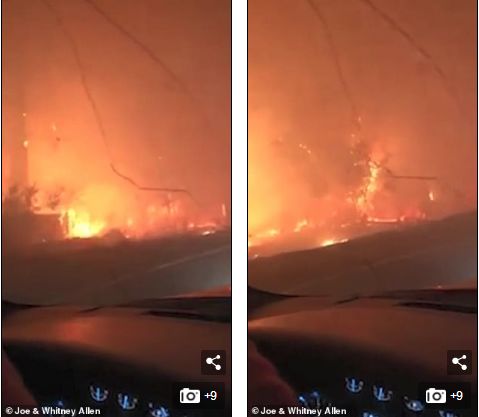 Allen)父親了解到當(dāng)?shù)氐纳交鹨恢睕](méi)有受到控制,他當(dāng)機(jī)立斷,駕車(chē)帶著3歲女兒撤離。撤離過(guò)程中,沿途樹(shù)林火勢(shì)猛烈,道路周?chē)鷿M(mǎn)是濃煙,能見(jiàn)度大大降低,交通也有些擁堵。女兒見(jiàn)狀受到驚嚇,嚷著要回家與母親見(jiàn)面。