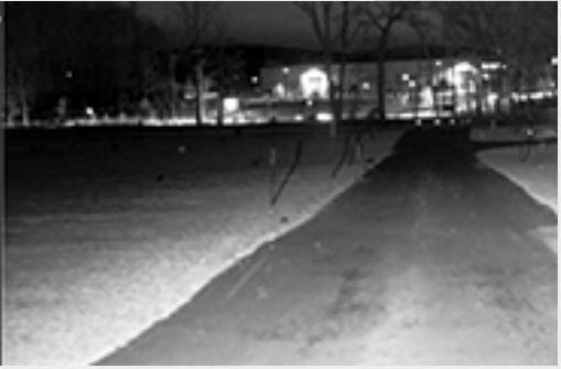短波紅外在駕駛員視覺增強系統(tǒng)中,短波紅外成像在目標識別上是非常有效的,而不僅僅是發(fā)現(xiàn)目標。短波紅外相機利用光的反射成像,因此成像特征非常類似于可見光。用戶能夠看到陰影,以及道路表面與路肩的不同,這在熱成像中是看不到的。熱成像駕駛視場增強系統(tǒng)依賴于溫度、熱輻射,當溫度相近的時候,難以看到路面的石塊或者凹陷。這使得熱像儀很難輔助駕駛開上或離開路面,特別是對于護衛(wèi)駕駛來說,難以看到剎車燈。