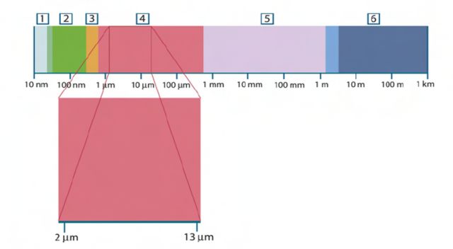 紅外光波段位于可見光以外,比紅色光波長更長,目前以8~12微米的熱紅外應(yīng)用最為廣泛.