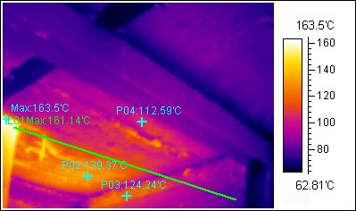 利用紅外熱像儀在井下用于檢查電纜效果明顯。當(dāng)電纜受潮時,受潮處的絕緣電阻降低;受損傷時,電纜截面減少,當(dāng)電流流過受潮或受損傷處產(chǎn)生熱量,使故障點的溫度偏高。使用紅外熱像儀沿著電纜掃描,根據(jù)溫度變化的大小可判斷電纜受潮或損傷的程度。紅外熱像儀可在電纜帶電狀態(tài)對其進行快速檢測預(yù)警功能,迅速有效發(fā)現(xiàn)存在的安全隱患,在第一時間進行處理,及時起到預(yù)警作用,有效避免礦井外因火災(zāi)的發(fā)生。