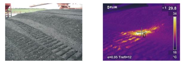 儲煤場堆放煤容易引起自燃,如儲煤量太大時一旦發(fā)生自燃,造成的損失不可估計。這時,我們可以借助紅外熱像儀準(zhǔn)確快速查找自燃點,將自燃點挖出處理,減少不必要的損失。同理,煤矸石山自燃釋放的有毒有害氣體,對矸石山周圍的人體健康,生存環(huán)境,社會穩(wěn)定等均造成嚴(yán)重的污染危害。紅外熱成像儀是檢測煤矸石山是否自燃的最好工具!