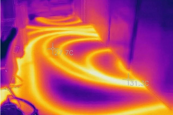 而通過手持式紅外熱像儀,暖通工程師使用手持式熱像儀就可以檢查有漏水嫌疑的地暖盤管,通過觀察管路各處溫度的明顯對比,輕易的辨別出具體的漏水點,避免開鑿地面不準(zhǔn)確造成的失誤。