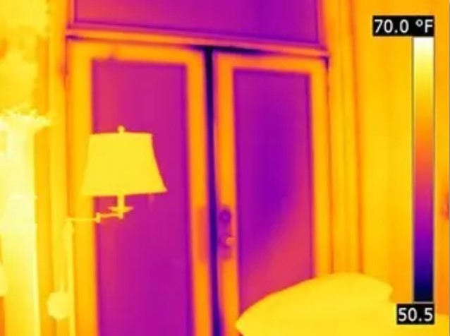 用于檢測(cè)空氣泄露點(diǎn)的常用方法是通過(guò)檢測(cè)空氣交換率并采用一種被稱為“風(fēng)門(mén)”的檢測(cè)過(guò)程。在該過(guò)程中,房屋內(nèi)會(huì)產(chǎn)生負(fù)壓。此時(shí),室外的壓力大于室內(nèi)的壓力,因此,空氣將會(huì)從密封不嚴(yán)的區(qū)域進(jìn)入。紅外熱像儀能夠快速檢測(cè)到流動(dòng)的氣流,密封不嚴(yán)的區(qū)域就可以很方便地被加以識(shí)別,并且在完成下一步工序之前解決問(wèn)題,從而避免由潛在的施工問(wèn)題變成花費(fèi)昂貴的棘手問(wèn)題。