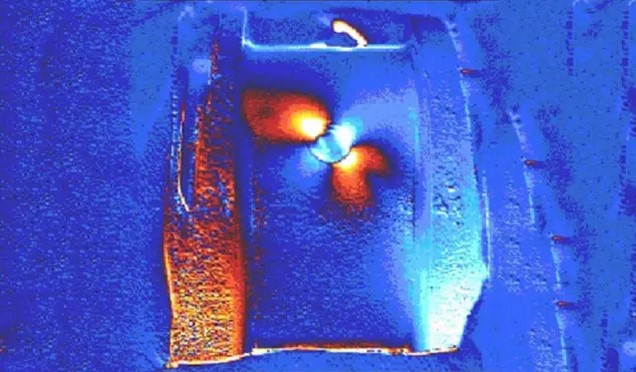 通過(guò)將捕捉的熱圖像與振動(dòng)頻率或進(jìn)入某一部件的超聲能量同步,就能實(shí)現(xiàn)對(duì)關(guān)鍵部件的裂紋進(jìn)行鎖相熱成像檢測(cè)。表面裂紋出的摩擦?xí)a(chǎn)生熱量,這樣細(xì)小的裂紋和斷裂無(wú)需使用染料或滲透液就能看得見(jiàn)。這種形式的NDT無(wú)需紫外線照射就能實(shí)現(xiàn)對(duì)大型部件或復(fù)雜固件的檢測(cè)。