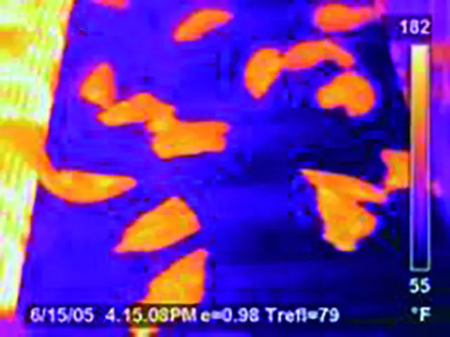 對(duì)屋頂滲漏系統(tǒng)進(jìn)行評(píng)估也是紅外熱像儀常見(jiàn)的應(yīng)用之一。水蓄熱的時(shí)間比正常屋頂材料蓄熱的時(shí)間長(zhǎng),當(dāng)屋頂在夜間冷卻下來(lái)后,有水的區(qū)域由于其溫度比其他區(qū)域高,因此,可以輕松被紅外熱像儀檢測(cè)出來(lái)。僅僅修理屋頂?shù)臐B漏區(qū)域而不用更換整個(gè)屋頂,大大節(jié)省了成本。