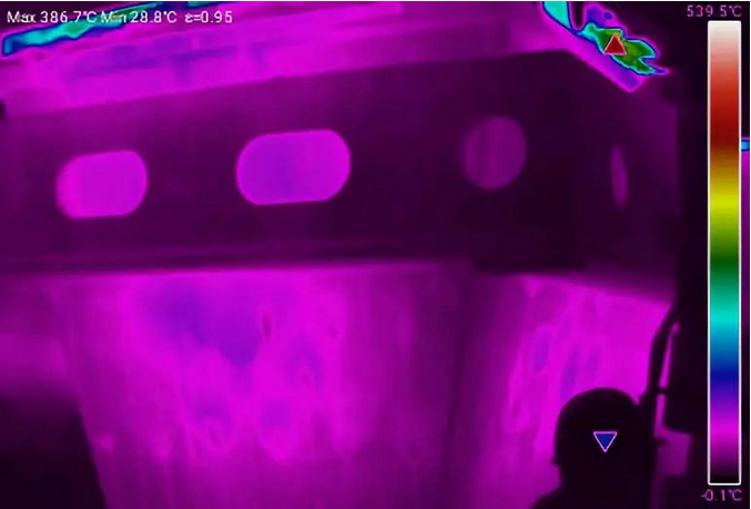 事實(shí)告訴我們,中間包發(fā)生穿包事故前,中間包外部鋼殼溫度會發(fā)生異常升高。穿包事故是一個(gè)動態(tài)過程,并非突然發(fā)生。在這個(gè)動態(tài)過程中,紅外熱像儀可對中間包實(shí)時(shí)監(jiān)控,通過熱圖熱梯度變化和溫度趨勢提前預(yù)警!