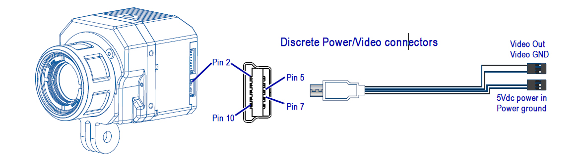 將GoPro-兼容電纜插入10-針mini-USB接頭,為熱像儀提供5V直流穩(wěn)壓電源,將模擬視頻發(fā)送到您的視頻發(fā)射機或OSD中,您就可以使用了