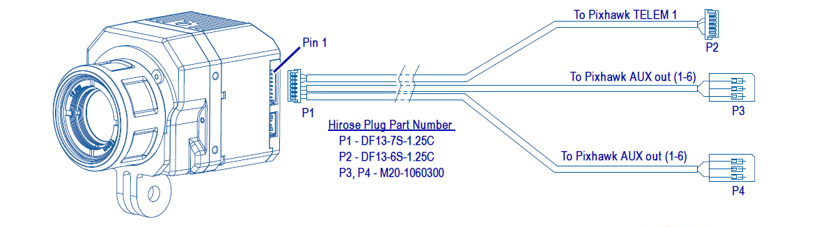 除支持MAVLink 前瞻兼容性外,相同的組件端口連接通過 PWM 命令為您提供了兩個熱像儀控制項,您可以選擇調(diào)色盤、啟動或停止記錄,或通過無線電控制器出發(fā)熱像儀的電子變焦功能。