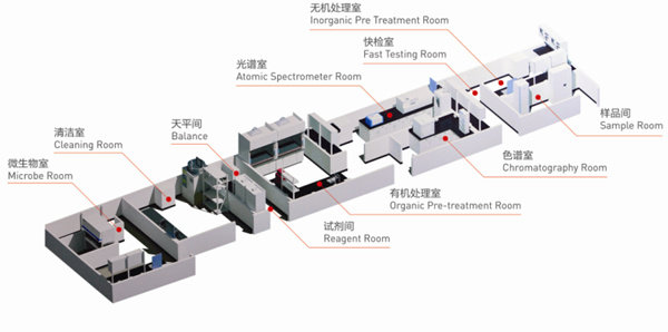 主要為大賣場和大型超市提供檢測24大類食品,68個檢測項目。如微生物、重金屬、食品添加劑、非法添加、獸殘、農殘、毒素等等。解決方案中涉及的分析儀器主要有:氣相色譜、液相色譜、原子吸收分光 光度計、紫外可見分光光度計、滴定儀、農藥殘留快速檢測儀、pH計、電導率儀、酶標儀以及前處理儀器等產品。