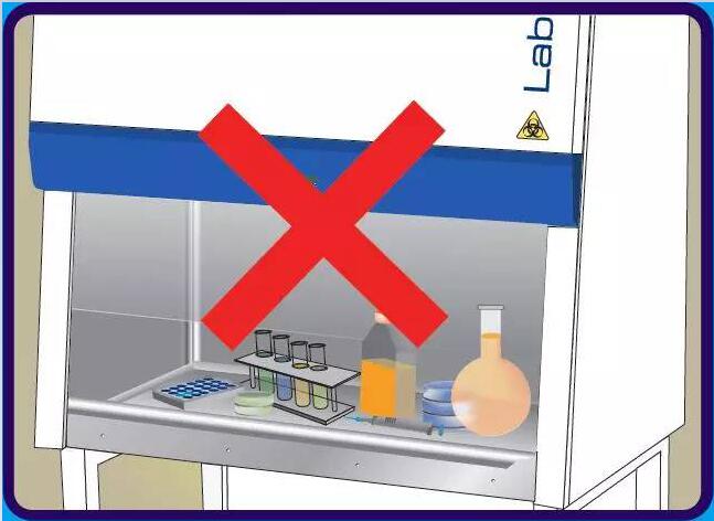 在工作區(qū)域內擺放過多物品會影響安全柜氣流和安全性能。
