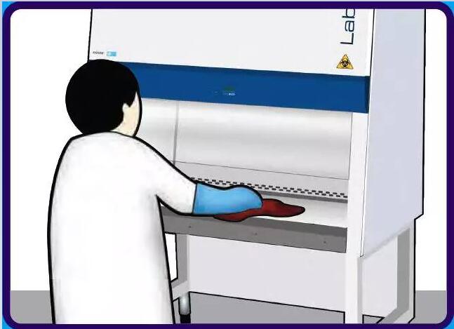 生物安全柜的工作區(qū)應該被依次劃分為三個區(qū)域:清潔區(qū)、工作區(qū)和污染區(qū)。生物危害性廢棄物袋應放置在污染區(qū)內;實驗儀器和樣品應放置在工作區(qū)域;而實驗供給品應放置在潔凈區(qū)內。在工作臺面上的實驗操作應該按照從清潔區(qū)到污染區(qū)的方向進行。