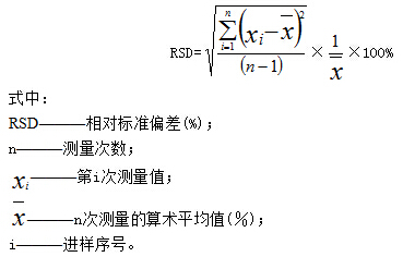 3、示值誤差檢定:按第4條表一所列不同水含量要求,測量水分在10μg時,需用10μL進樣器注入10μL 1mg/g水-甲醇標準溶液;測量水分在100μg時,需用100μL進樣器注入100μL 1mg/g 水-甲醇標準溶液;1000μg時,需用10μL 進樣器注入1μL二次蒸餾水標準溶液;100mg 時,需用100μL進樣器注入100μL二次蒸餾水標準溶液。分別對不同水含量的標準溶液重復(fù)測量3次,計算平均值與標準值的差值即為該水含量點的儀器示值誤差。