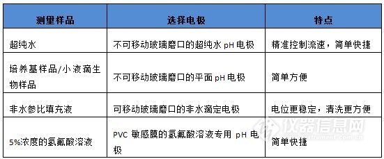 玻璃球泡(即pH敏感膜)的選擇主要依據(jù)被測(cè)量對(duì)象的性質(zhì),針對(duì)不同的樣品,一般的選擇規(guī)律如下: