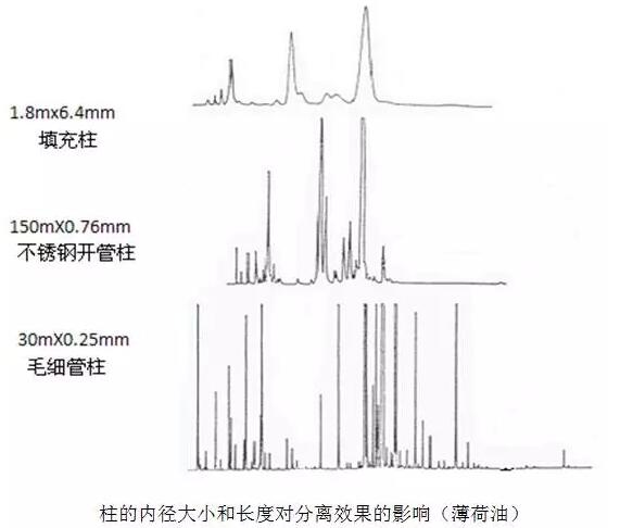 相對(duì)于填充柱來(lái)說(shuō),毛細(xì)管柱一般具有更高的分離效能,這是因?yàn)椋?/p>