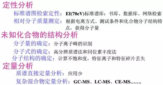 質(zhì)譜:定性、定量,可以推測(cè)物質(zhì)的組成;