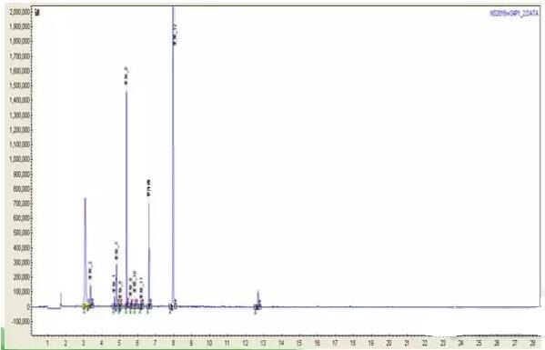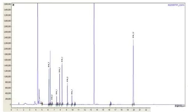 它的程序升溫: 80℃保持1min,以15℃/min速度上升到280℃,保持10.00min。共22.0min。