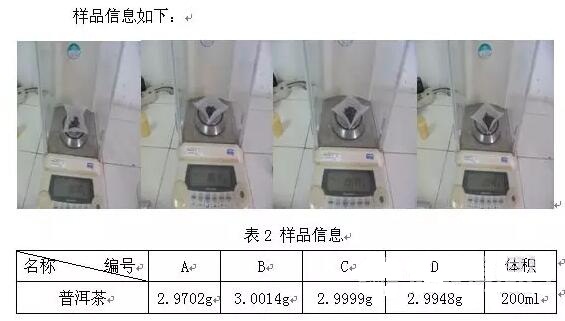 用電子天平?取約3.0克樣品置于250mL錐形瓶中,加20ml沸水沖洗(由于水溫不好控制,故統(tǒng)一用沸水),即刻棄去第一道茶水;再加200ml沸水浸泡30min,傾出茶水,搖勻,將茶水用中速定量濾紙過濾,冷卻至室溫。同樣方法獲得第二道茶水及第三道茶水。